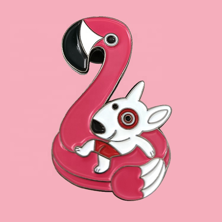 Home » Products » Enamel Pin » Soft Enamel Pin » Playful Pup and Flamingo Duo Enamel Lapel Pin Unique Animal Themed Accessory